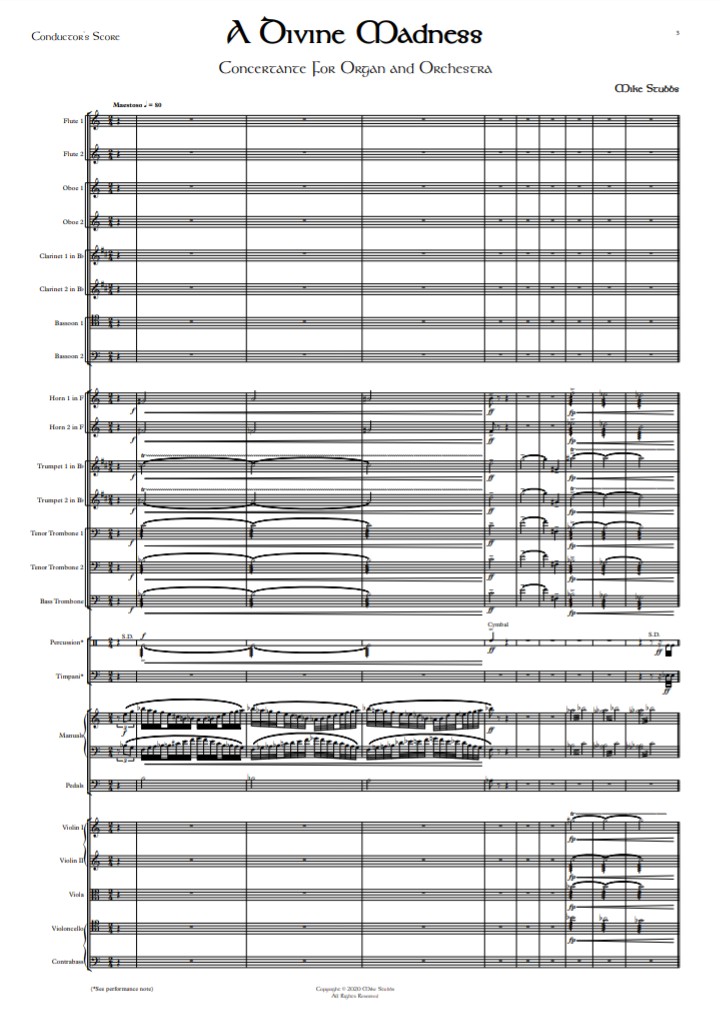 There are many instruments that have a vast repertoire of well known (and well loved) concertos and concertante pieces, written by leading composers of the day, pitting them against the might of the symphony orchestra, normally with spectacular results. However, the organ and orchestra seems to be a combination that has not captured the imagination of the ‘major composers’ in the same way over the years. Take away the concertos of Handel and Poulenc, and I would conjecture that most concert-going public would struggle to name any examples at all. I find this surprising, to say the least. On the face of it, who would not want to delight in the amazingly varied sound pallets offered by the combination? So when I was offered the opportunity to write for the combination, I jumped at the chance.