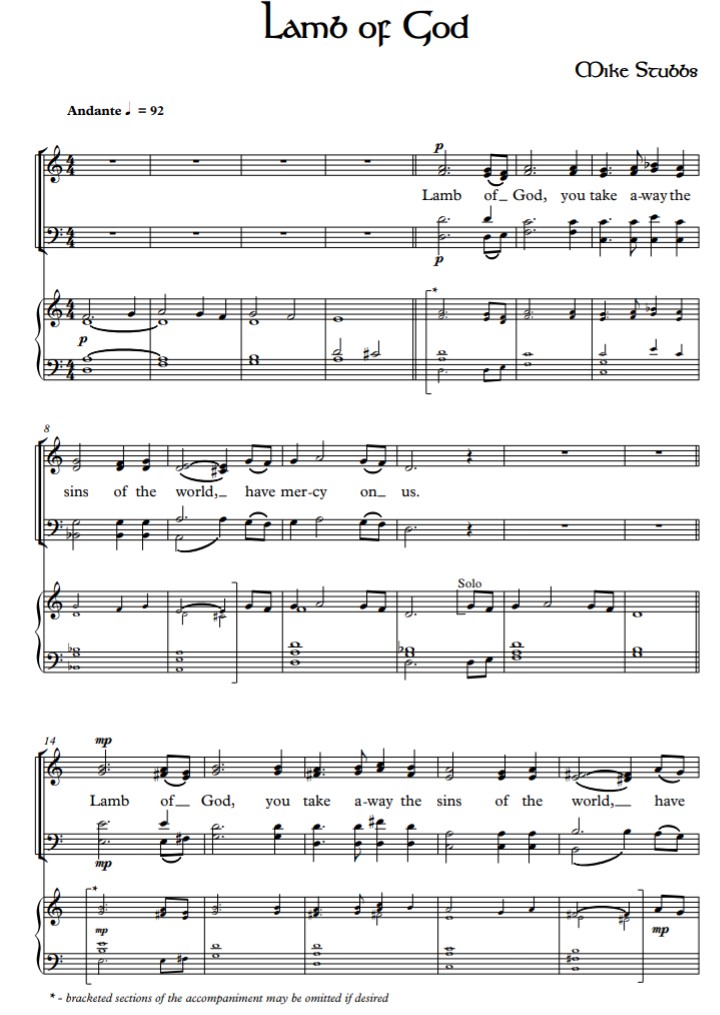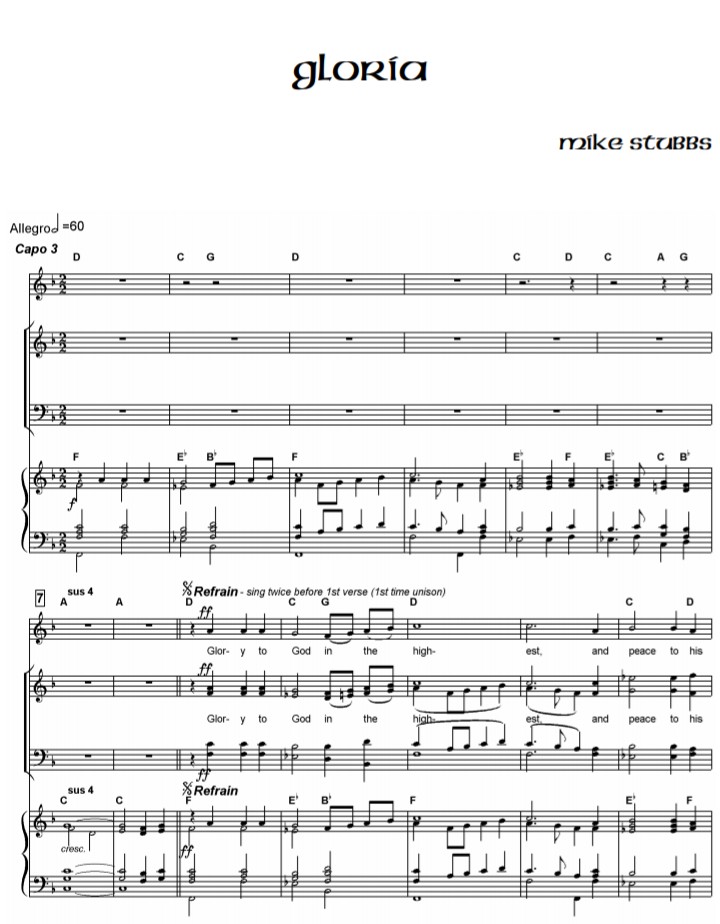 - 2012 Version – a setting of the English translation used in the Roman Catholic Church for congregation, optional choir and straightforward accompaniment.