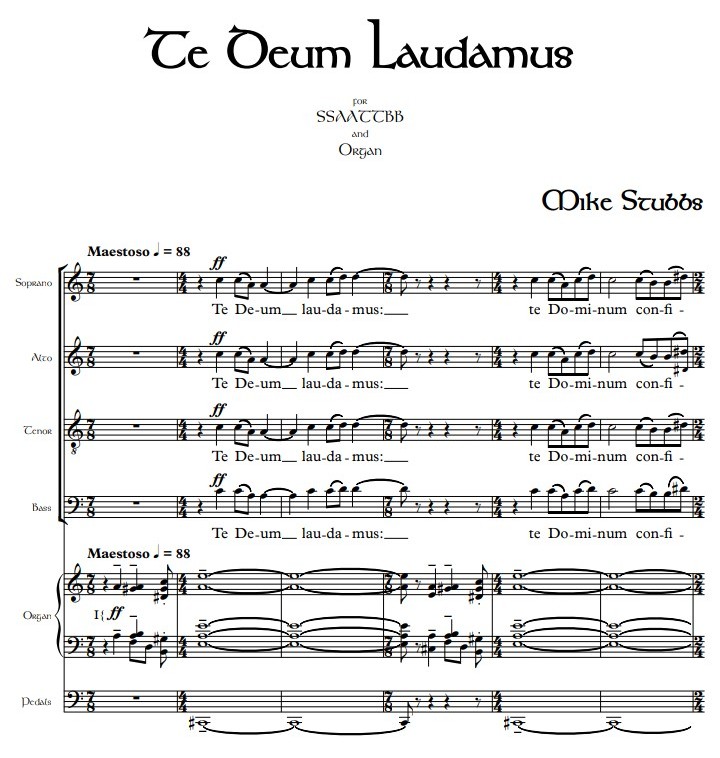 Commissioned by a friend to celebrate the birth of his niece, the Te Deum Laudamus sets the Latin text with long, sweeping unison lines, intricate polyphony and majestic chordal Acclamations. Throughout, an independent yet supportive organ lends further colour to the hymn.