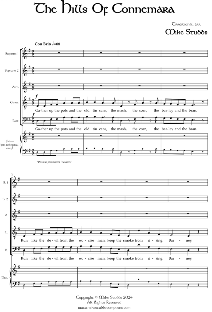 This is a setting of the traditional Irish song about the battle of wits between the illicit Poitin distillers and the excise men tasked with their elimination.